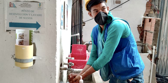 “Cuando anunciaron el tema de los protocolos, nosotros organizamos lo más pronto posible desde la parte administrativa para ayudar a la gente a iniciar actividades. Pusimos lavamanos en todos los pisos, puntos de desinfección, una especie de vestier o cubículo para cada persona, entre otros. Tuvimos un proceso largo de aceptación de los protocolos: llevarlos hasta la Alcaldía, que fueran aprobados, realizar los protocolos en la obra, esperar la visita de la Alcaldía y que nos aprobaran iniciar actividades con la gente. Finalizando mayo ya logramos reactivar la obra”, explicó Yohanna.