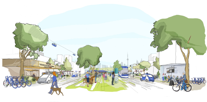 Sidewalk cree que los vehículos autónomos compartidos tendrán más importancia que los carros particulares. “Una red de taxi compartido puede ofrecer las ventajas del servicio punto a punto con economías de espacio y combustible cercanas a las del autobús urbano, reemplazando automóviles privados mientras se apoyan las mejoras de transporte tales como otras extensiones de tranvías, la nueva estación Metrolinx planificada en East Harbor y conexiones al ferry.