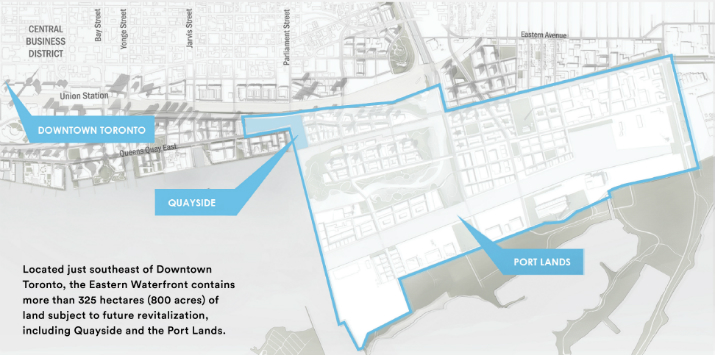 Quayside, como se llamará el nuevo barrio, estará ubicado en el suroriente del centro de Toronto (Canadá), a las orillas del Lago Ontario. La fase inicial y los proyectos piloto tendrán una inversión de 50 millones de dólares y es posible que a partir de 2022 empiecen a habitar allí los primeros residentes.