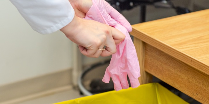 Una vez hayas terminado de limpiar tus objetos, quítate los guantes con cuidado, bótalos en la caneca y lávate las manos.