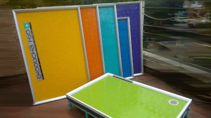 • Lona antideslizante e impermeable: la cual permite pararse sobre la Ekoducha sin dañar las botellas y todo su sistema. Esta viene en diferentes colores.