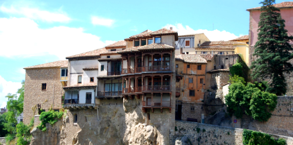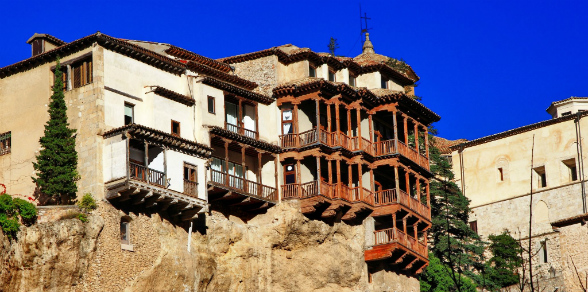 Estas construcciones son el monumento característico de la ciudad. Algunas edificaciones datan del siglo XV y fueron construidas en el sitio conocido como Hoz del Huécar, un cañón formado por el río que lleva el mismo nombre y en donde se sitúan las casas colgantes, el convento de San Pablo y la posada de San José.