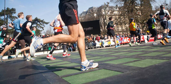 Baldosas puestas para la maratón en París.