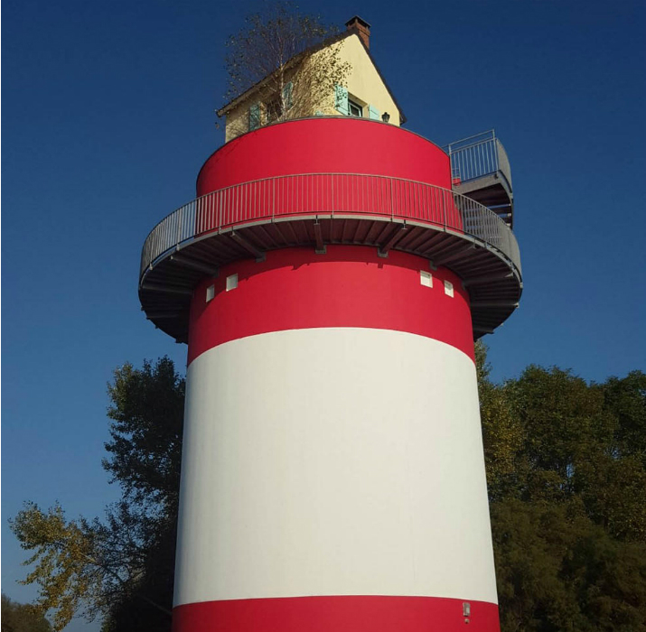 La Villa Cheminee de Tatzu Nishi. Esta estructura de faro de aproximadamente 15 metros de altura está localizada en Nantes, Francia, fue parte de la creación de un artista japonés y cuenta con un dormitorio, una cocina y un calentador de leña, la villa también tiene un jardín.