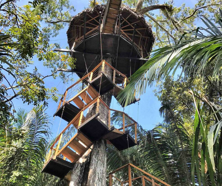 Treehouse Lodge. Este hotel está ubicado en Paraíso, Perú. La famosa casa del árbol está a 20 metros de altura sobre el Amazonas, sus huéspedes pueden ingresar a través de pasillos y puentes de madera elevados. A su alrededor se pueden observar animales exóticos y salvajes.