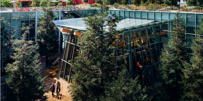 Además, los vidrios amigables con las aves permiten vistas claras y entrada de luz natural, lo que reduce el uso de iluminación artificial a lo largo del día. Por último este edificio se asoció con ECO100 de Peninsula Clean Energy para reducir su huella de carbono en el planeta. El edificio también está diseñado para lograr la certificación LEED Platinum (Leadership in Energy & Environmental Design) a través del Green Building Council de EE. UU.