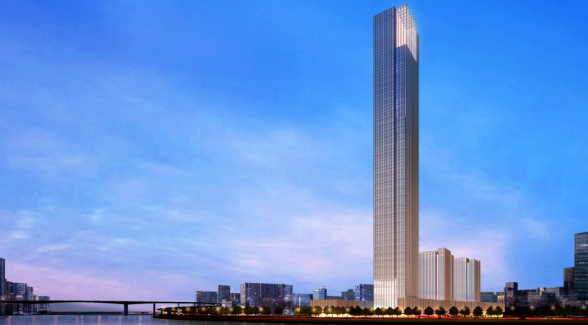 Su edificación está a cargo de Kohn Pedersen Fox Associates. Se espera que sea terminado durante este 2017 y aunque será el rascacielos más alto de la ciudad, ya se tiene proyectada la construcción de un edificio de 700 metros que lo superará.