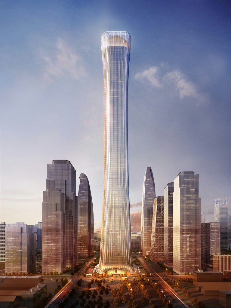 En el centro de Beijing, en China, se está construyendo el Zun Tower, un centro de negocios que tendrá un área de 30 hectáreas y 528 metros de altura. Será el segundo edificio más alto del norte de China. La forma de la edificación está insipirada en un artefacto de un ritual tradicional chino, el 'zun’. Una de sus particularidades es que es una torre cuadrada con las esquinas redondeadas. Serán 60 pisosdedicados a oficinas, 20 para residencias y 20 destinados para un hotel.
