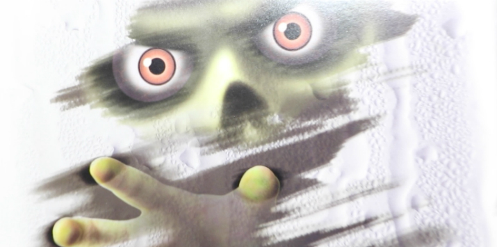 Si buscas hacer algo fuera de lo común, puedes enfocar tu decoración hacia el lado terrorífico. Puedes usar adhesivos de figuras escalofriantes en las ventanas.