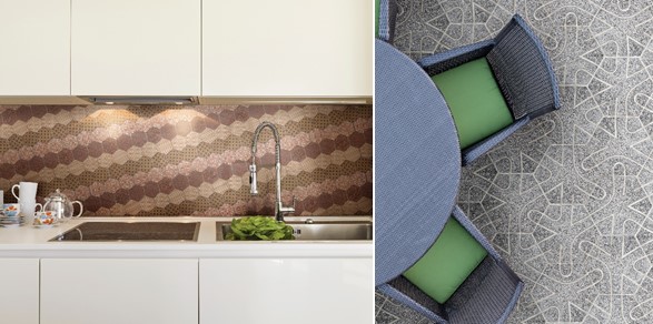 Otro elemento importante son las formas geométricas, donde la figura estrella es el hexágono, que se aleja de los cuadrados y rectángulos tradicionales para innovar en pisos de cerámica y mallas (recubrimientos especiales para las paredes) para cocinas y baños, en las que incluso hay una que alumbra en la oscuridad. Además, hay pisos con figuras asimétricas, que forman hasta cuatro diseños dependiendo como se instalen.