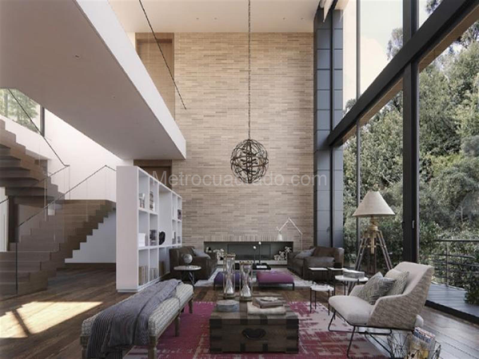 Descripción: este penthouse tiene vista panorámica hacía Bogotá, tiene 5 garajes, 2 depósitos y terrazas de 123 metros cuadrados. En el interior la vivienda cuenta con un área de 747 metros cuadrados, 3 habitaciones, domos internos con luz natural, chimenea, salón, comedor, estudio, biblioteca, pisos radiantes e insonorización completa.