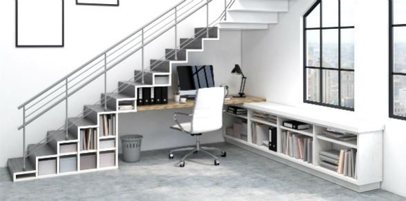 “Conviene sacar partido a huecos desaprovechados, como los zócalos de los armarios bajos y en el caso de contar con una escalera entre paredes, unos peldaños con frentes extraíbles ofrecerán una gran capacidad de almacenaje”, asegura Galindo.