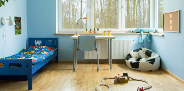 El azul es un color relajante y fresco que transmite serenidad, sinceridad, fidelidad y confianza. En la psicología del color, el azul ayuda a que los niños tengan menos “rabietas” y sean menos agresivos, por eso, es ideal utilizarlo en las habitaciones de los más pequeños del hogar.