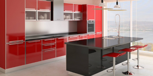 El color rojo inspira elegancia, madurez, pasión, poder y dinamismo. Es cálido y sensual. Existen diferentes tonalidades de rojo que se puede combinar con el blanco. Para la experta en decoración Esther Algara, este color está de moda en las cocinas modernas tipo americano ya que sus espacios son abiertos y logran verse a simple vista. Además, este color puede ser utilizado en el comedor, ya que el rojo refleja luminosidad e incrementa el apetito.
