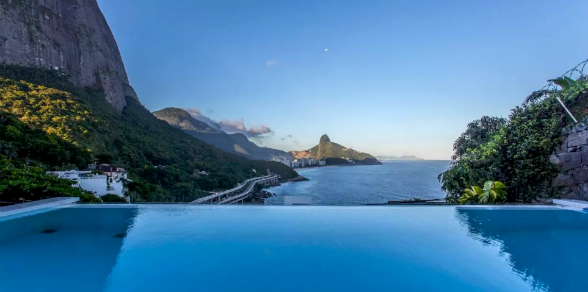 Como su nombre lo indica está frente al mar. Es una casa de diseño contemporáneo que se encuentra en Río de Janeiro (Brasil). Cuenta con una piscina de borde infinito, sauna, BBQ, entre otros servicios.