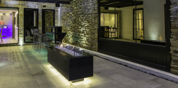 La firma diseña varios tipos ideales para el jardín o las terrazas, empleando materiales en vidrio templado que rodean el área del fuego, protegen la llama y con acabados en mármol para una mayor resistencia a la intemperie.
