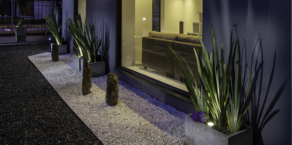 Las bombillas y accesorios deben ser resistentes a la intemperie e incluir cualidades de eficiencia energética. Varias marcas ofrecen diversos productos que se pueden adaptar en paredes, pisos y techos.